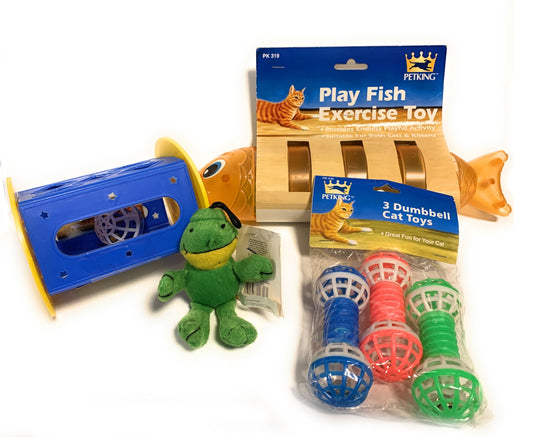Sparky Pet Co Cat Play Toy Set, 3 Cat Dumbbells, Catnip Toy, Play Fish, Roll Around Toy