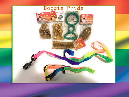 Pet Pride Rawhide Dog Treats, Knotted Bones, Braided Chews, Leash, and Collar Set (3/4" Width Leash and 14"-20" Collar)
