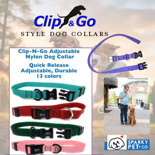 Sparky Pet Co 3/4" Universal Clip-N-Go Adjustable Nylon Dog Collars (Variants)