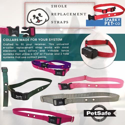 Sparky Pet Co 3/4" Replacement Nylon Collar with 2 Holes -Spaced at 1.25" Apart - 15 Colors