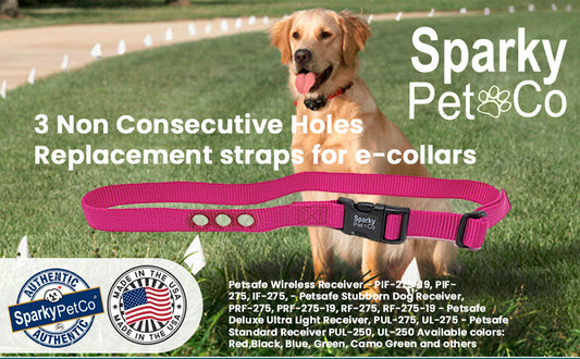 (3) - Sparky Pet Co ¾” Nylon 3-Hole Consecutive Dog Fence E-Collar Receiver Strap – Heavy Duty Replacement for Bark Collars Containment Systems
