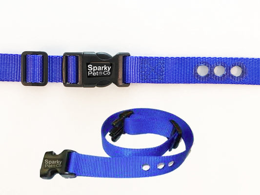 Sparky Pet Co 1” Nylon 3-Hole Consecutive Dog Fence E-Collar Receiver Strap – Universal Fit for Bark Training Systems - Blue