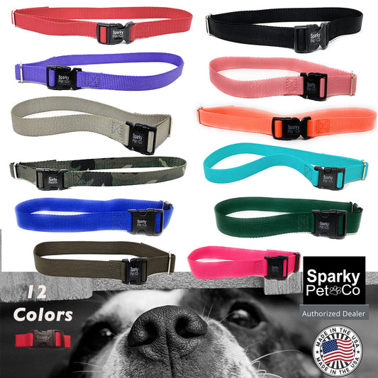 Sparky Pet Co 1" ECollar Replacement Strap - Solid Nylon - Easy Release Dog Collar - (Variants)