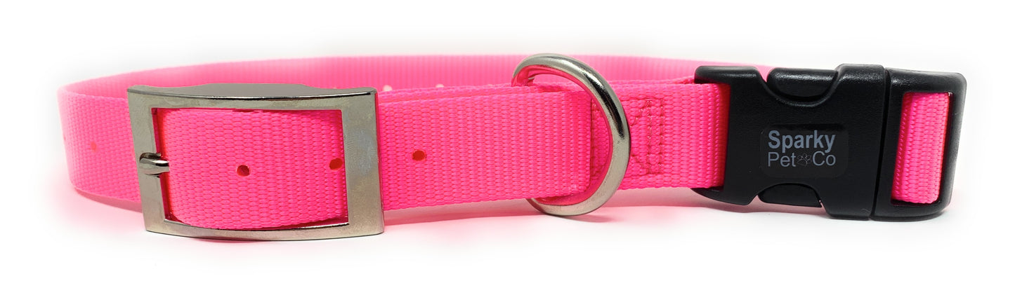 Sparky Pet Co 3/4" / 1" ECollar Replacement Strap - Easy Release Double Buckle Dog Collar - Rugged Nylon - Adjustable - D Ring - Quick Release Metal Clasp - for Invisible Fence Systems (Variants)