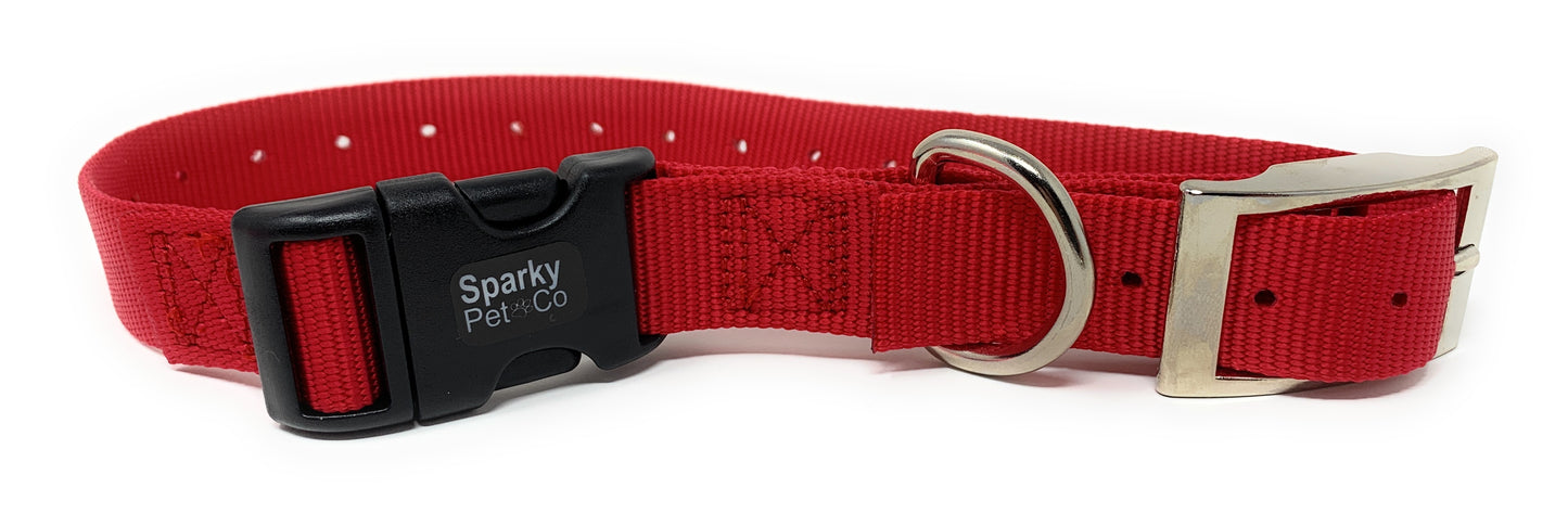 Sparky Pet Co - ECollar Replacement Strap - Easy Release Double Buckle Dog Collar - Rugged Nylon - Adjustable - D Ring - Quick Release Metal Clasp - for Invisible Fence Systems
