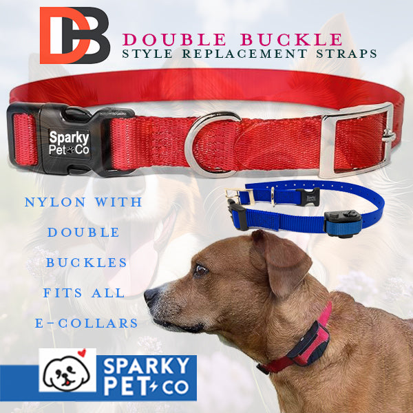 Sparky Pet Co - ECollar Replacement Strap - Easy Release Double Buckle Dog Collar - Rugged Nylon - Adjustable - D Ring - Quick Release Metal Clasp - for Invisible Fence Systems - 3/4" x 24" (Variants)