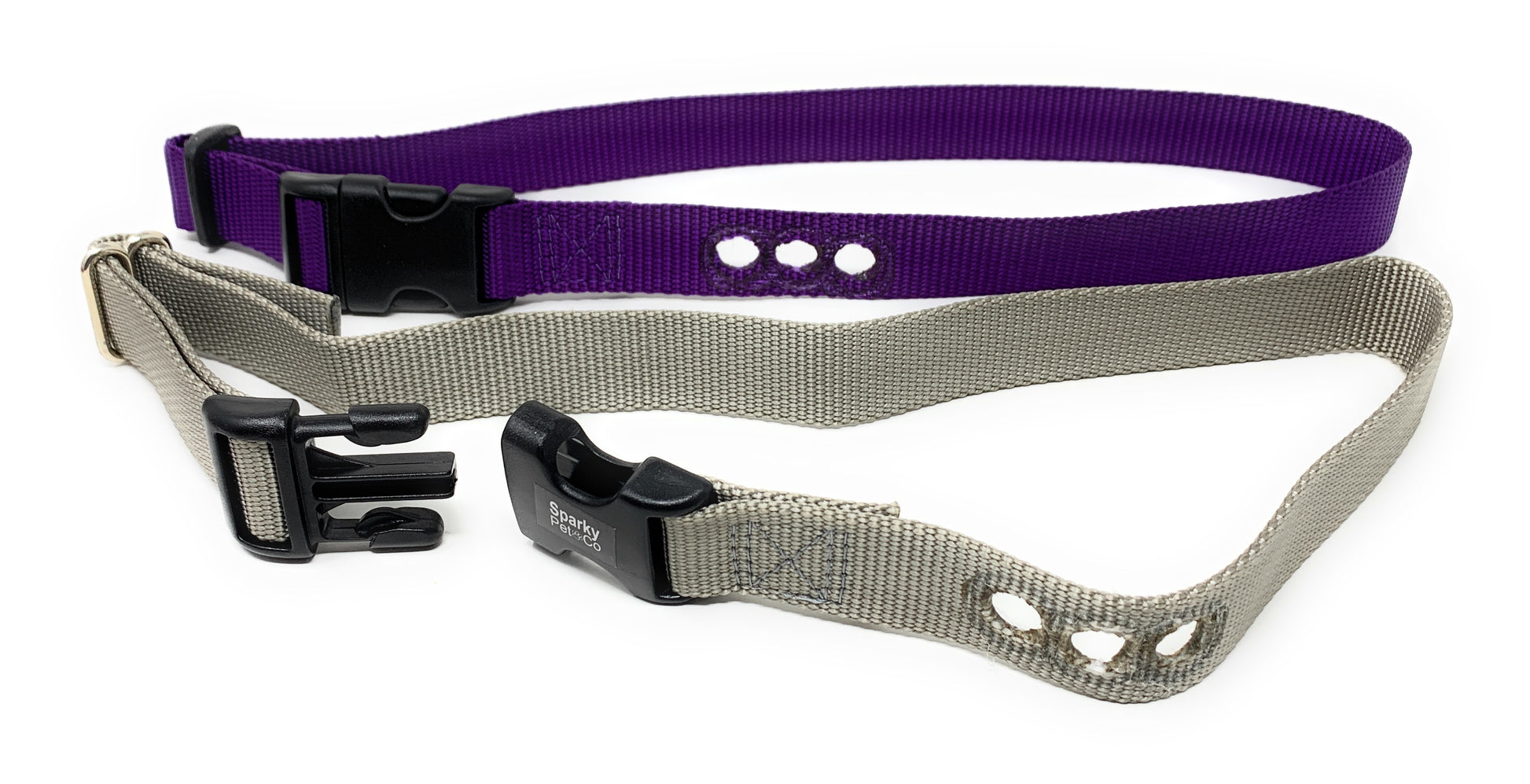 Sparky Pet Co 1” Nylon 3-Hole Consecutive Dog Fence E-Collar Receiver Strap – Universal Fit for Bark Training Systems - Silver Grey