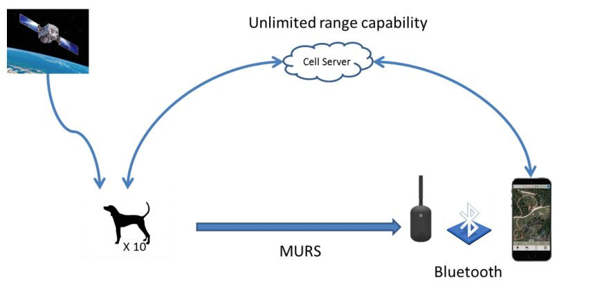 Dog's satellite position is sent to your map via MURS and cellular technology