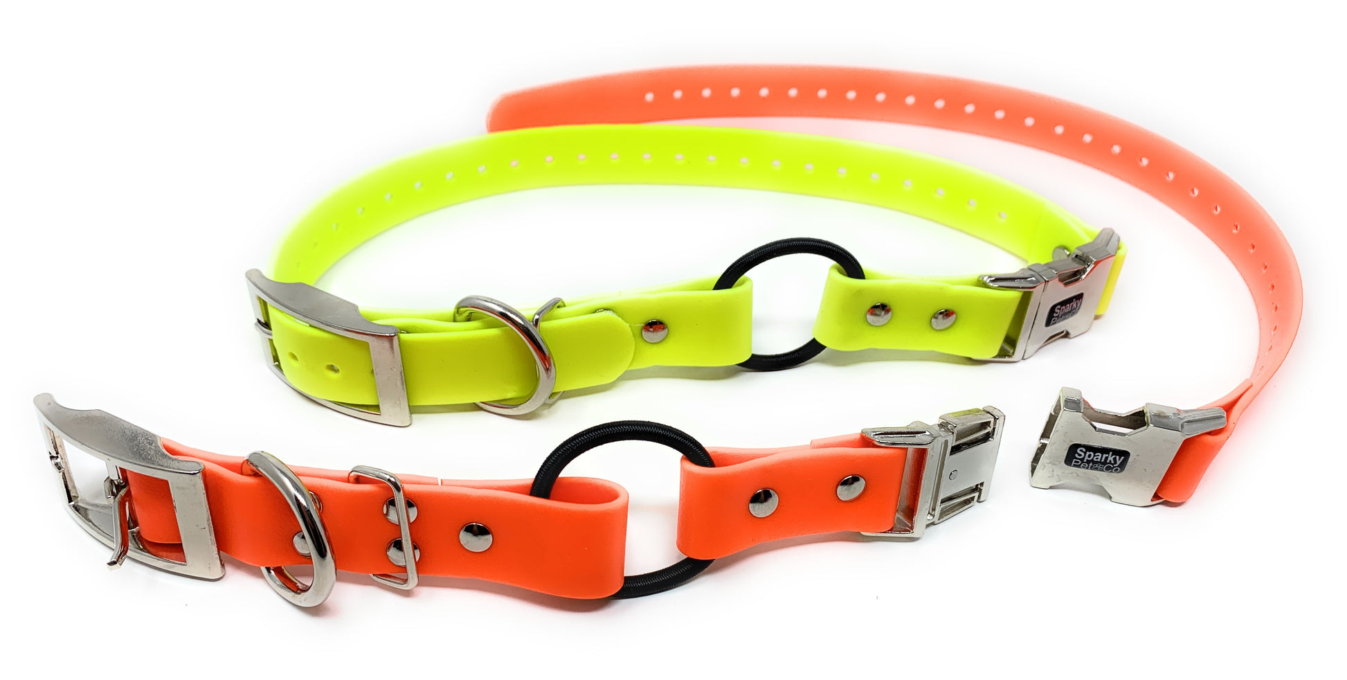 - ECOLLAR REPLACEMENT STRAP: Spring into the season by updating your dog's e-collar receiver strap! This 1" x 30" trim-to-fit biothane bungee loop collar by Sparky Pet Co is the perfect replacement for tattered, faded, and stained e-collar straps—designed for improved comfort, rigorous use, and superior receiver compatibility. Available in 7 colors.