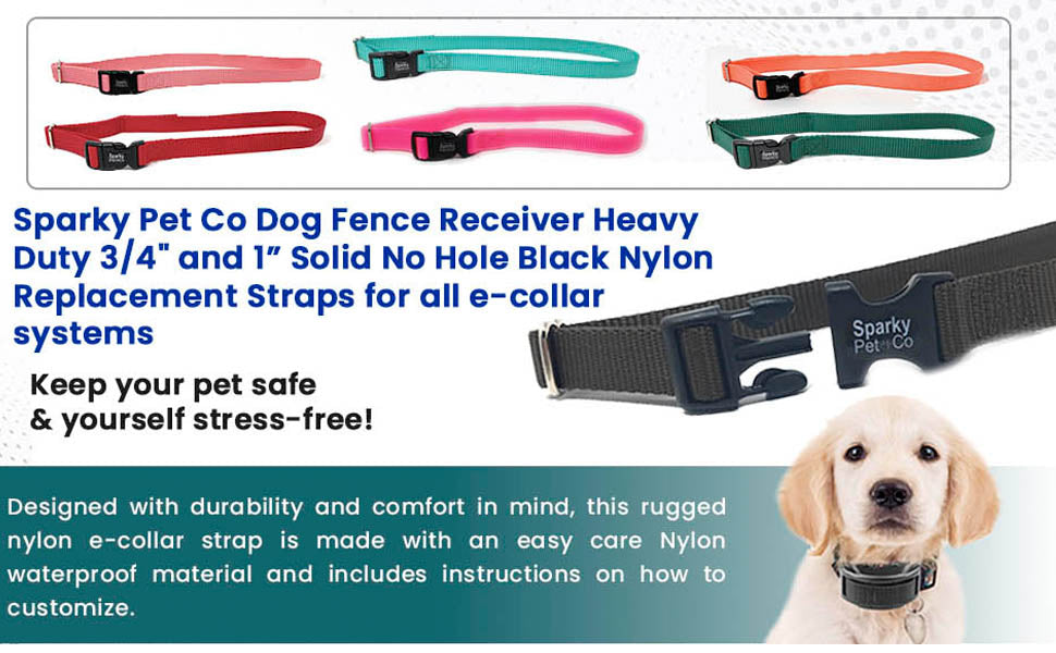 Keep your dog safe and yourself stress free with the Sparky Pet Co 3/4" Solid Nylon Replacement Strap, crafted specifically for electronic containment systems where the strap wraps around the receiver—no holes required!