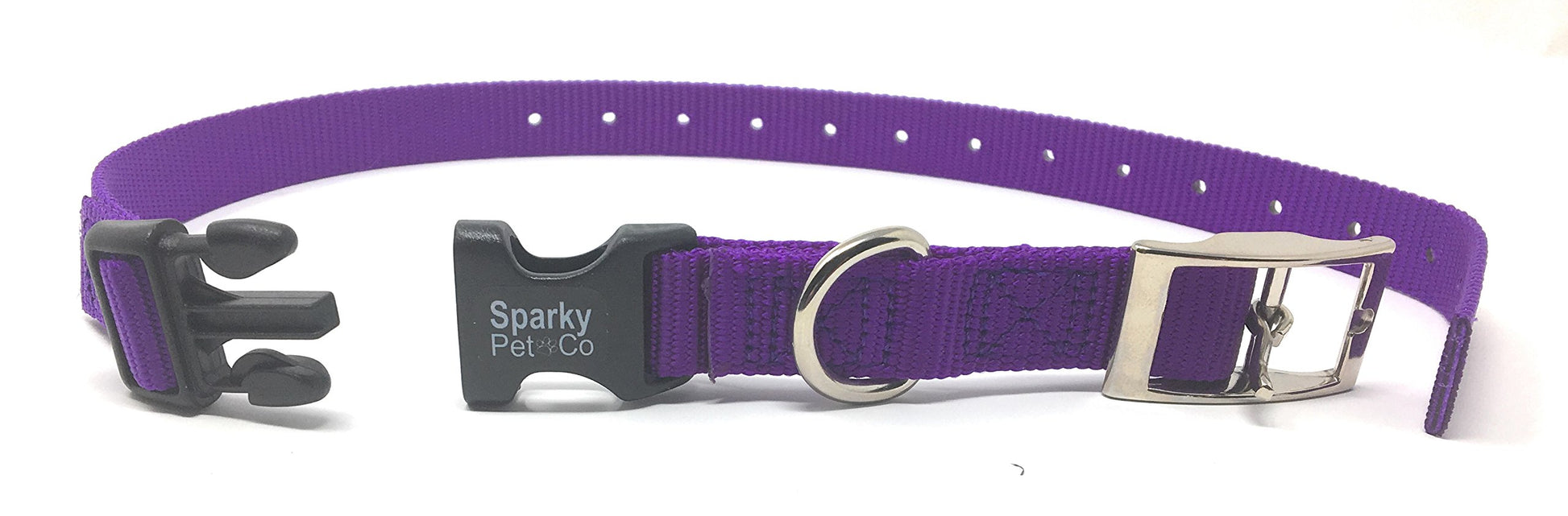 Sparky Pet Co - ECollar Replacement Strap - Double Buckle Dog Collar - Rugged Nylon - Adjustable - D Ring - Quick Release Metal Clasp - for Invisible Fence Systems - 3/4" x 21" - Purple